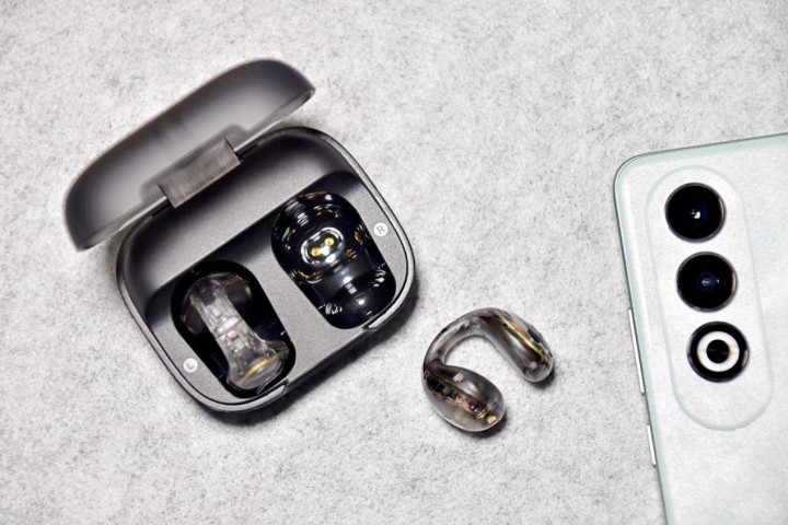 佩戴体验:采用空气弧人体工学软梁设计,单只约5.8g。耳夹贴合自然,佩戴轻盈舒适。C型结构稳定性适中,适合日常通勤与办公场景,剧烈运动时略显松动。